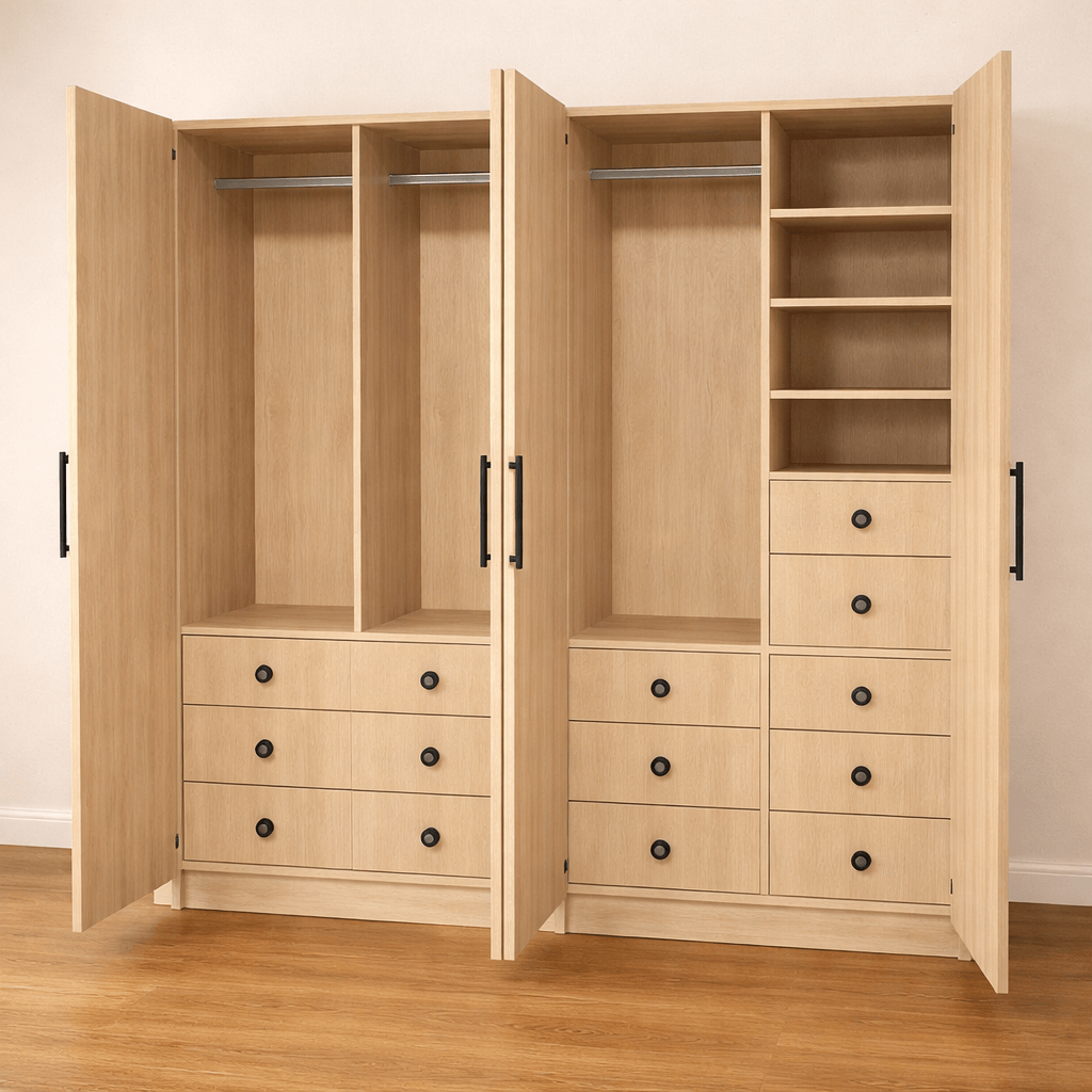Ce dressing sur mesure scandinave avec portes est pensé pour créer une atmosphère douce et lumineuse tout en offrant un rangement parfaitement organisé. Entièrement personnalisable, il vous permet de choisir les dimensions, les finitions, le style des portes ainsi que l’agencement des penderies, étagères et tiroirs afin de concevoir un dressing unique, adapté à votre intérieur. Le sur-mesure vous garantit une intégration harmonieuse et un aménagement pensé selon votre mode de vie.