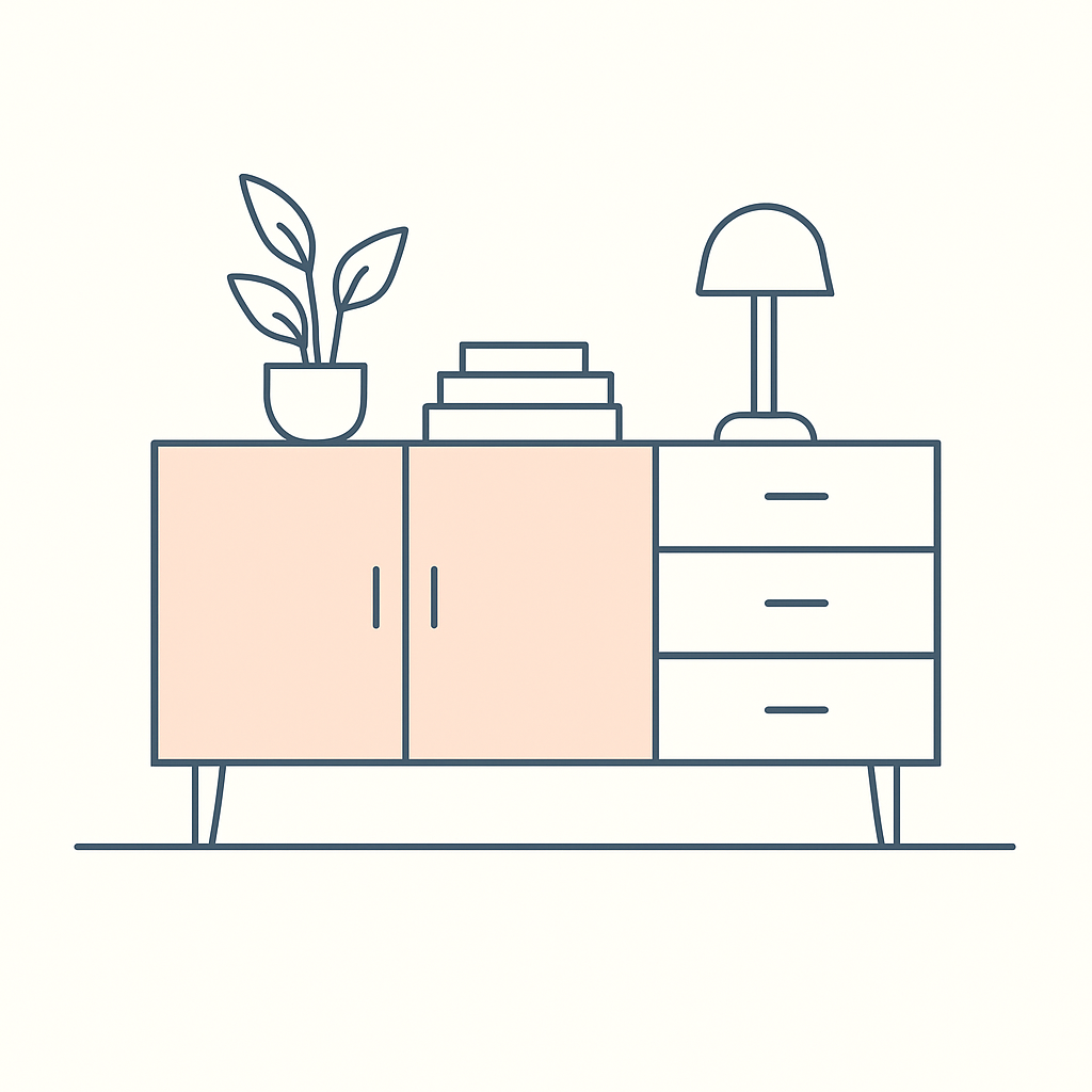 Grâce à la configuration sur mesure, vous adaptez la largeur, la hauteur et la profondeur du meuble, ainsi que l’organisation intérieure : portes, tiroirs, niches ouvertes ou fermées. Le meuble bas peut servir de rangement principal, de meuble d’appoint ou de support décoratif, selon vos besoins.